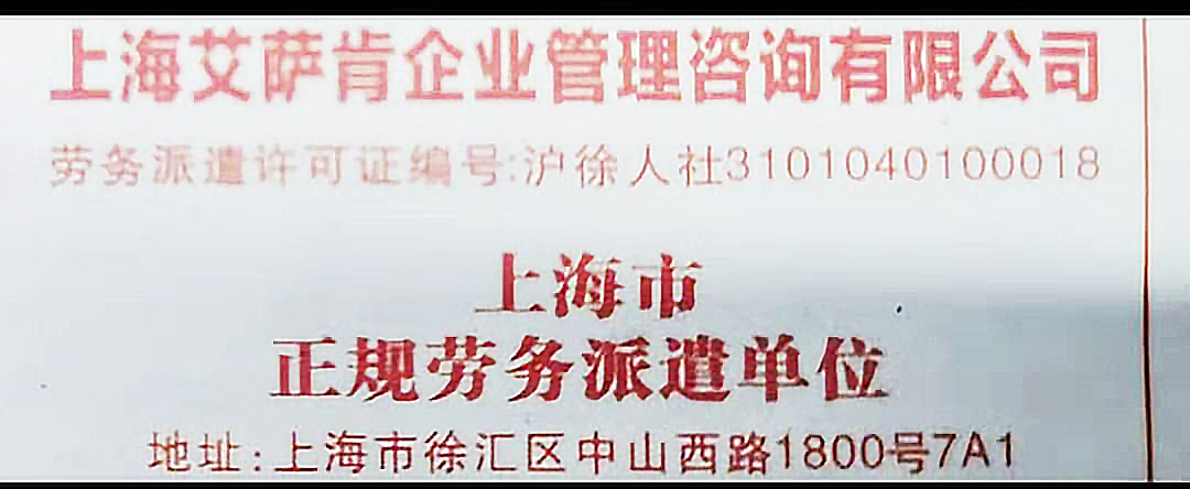上海艾薩肯企業(yè)管理咨詢有限公司(ISK)榮獲“上海市正規(guī)勞務(wù)派遣單位”表彰。