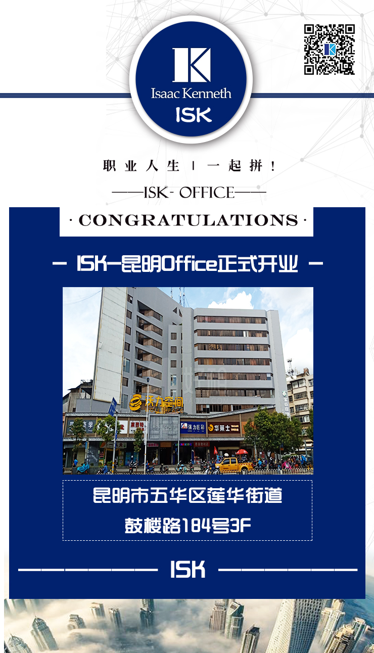 ISK新Office位于云南省省會,國家歷史文化名城享有“春城”之名的昆明;ISK昆明Office將在2021年這個充滿希望的一年如雨后春筍一般茁壯成長,并銘記ISK核心價值觀——以客戶為中心,恪守核心企業(yè)文化——客戶第一、銳意進取、誠信守諾、團隊協(xié)作,旨為客戶提供最優(yōu)質(zhì)的服務(wù),祝愿ISK昆明Office——蒸蒸日上,展翅翱翔,蓬勃發(fā)展。